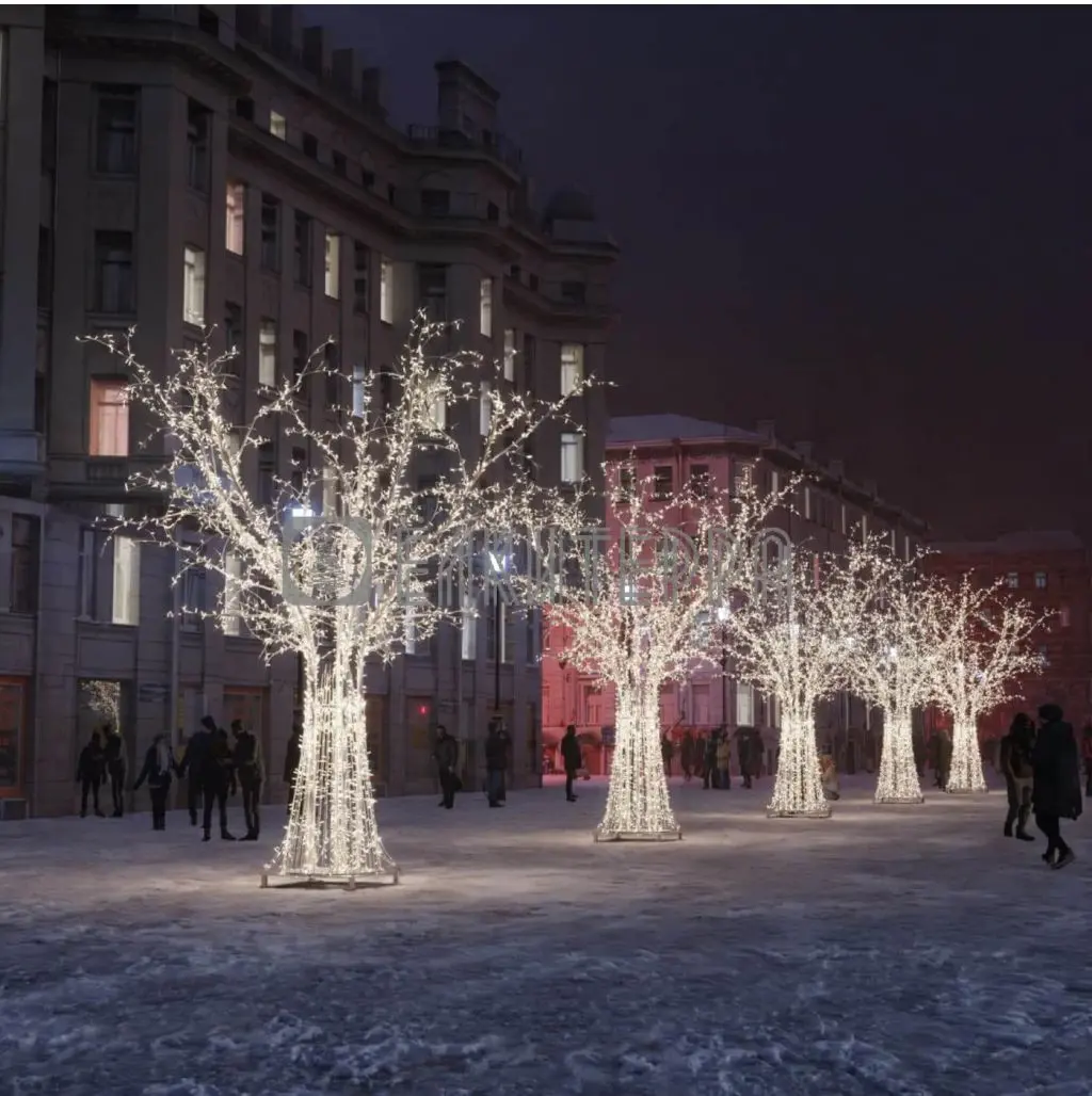 Аллея из золотых светодиодных деревьев новогодний комплект 5 шт