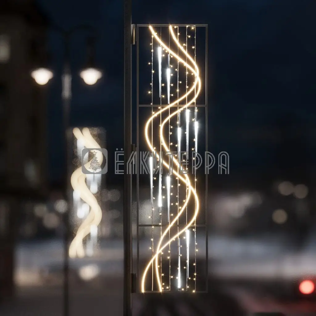 МатериалКаркас: алюминий / Светотехника: флекс-неон, светодиодная нить, падающая капля