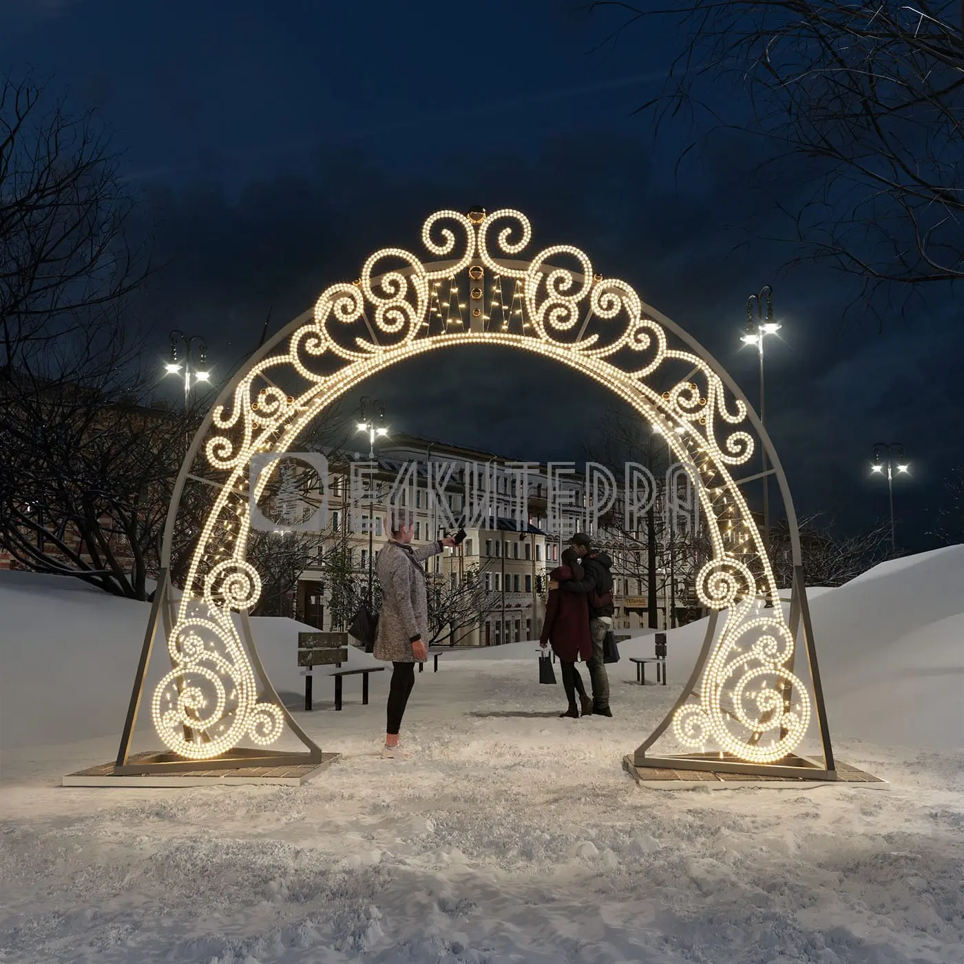 МатериалКаркас: алюминий, пластиковые шары;Светотехника: дюралайт, светодиодная нить,бетонные пригрузы