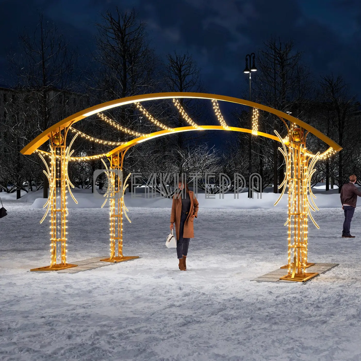 Арка световая новогодняя беседка золотая