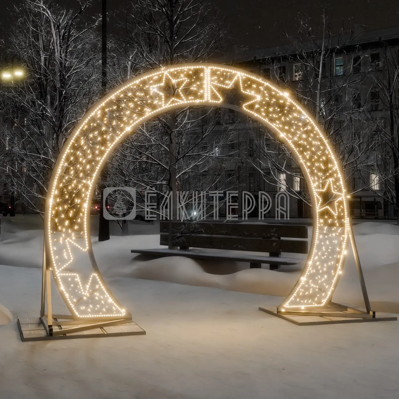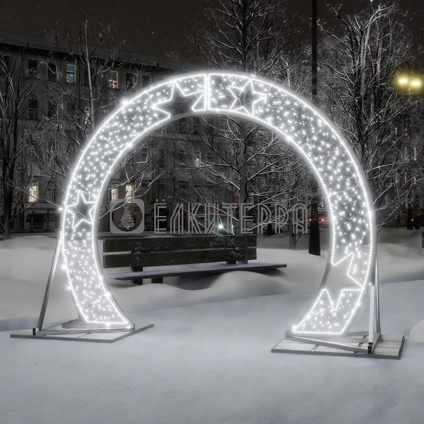 Арка световая новогодняя круглая белая со звездами