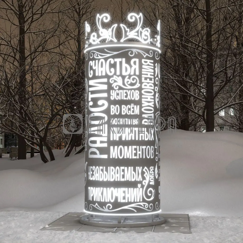 Материал" Каркас: металл / Обшивка: поликарбонат, плёнка, пластиковые шары / Светотехника: флекс-неон, прожекторы,пригрузы"