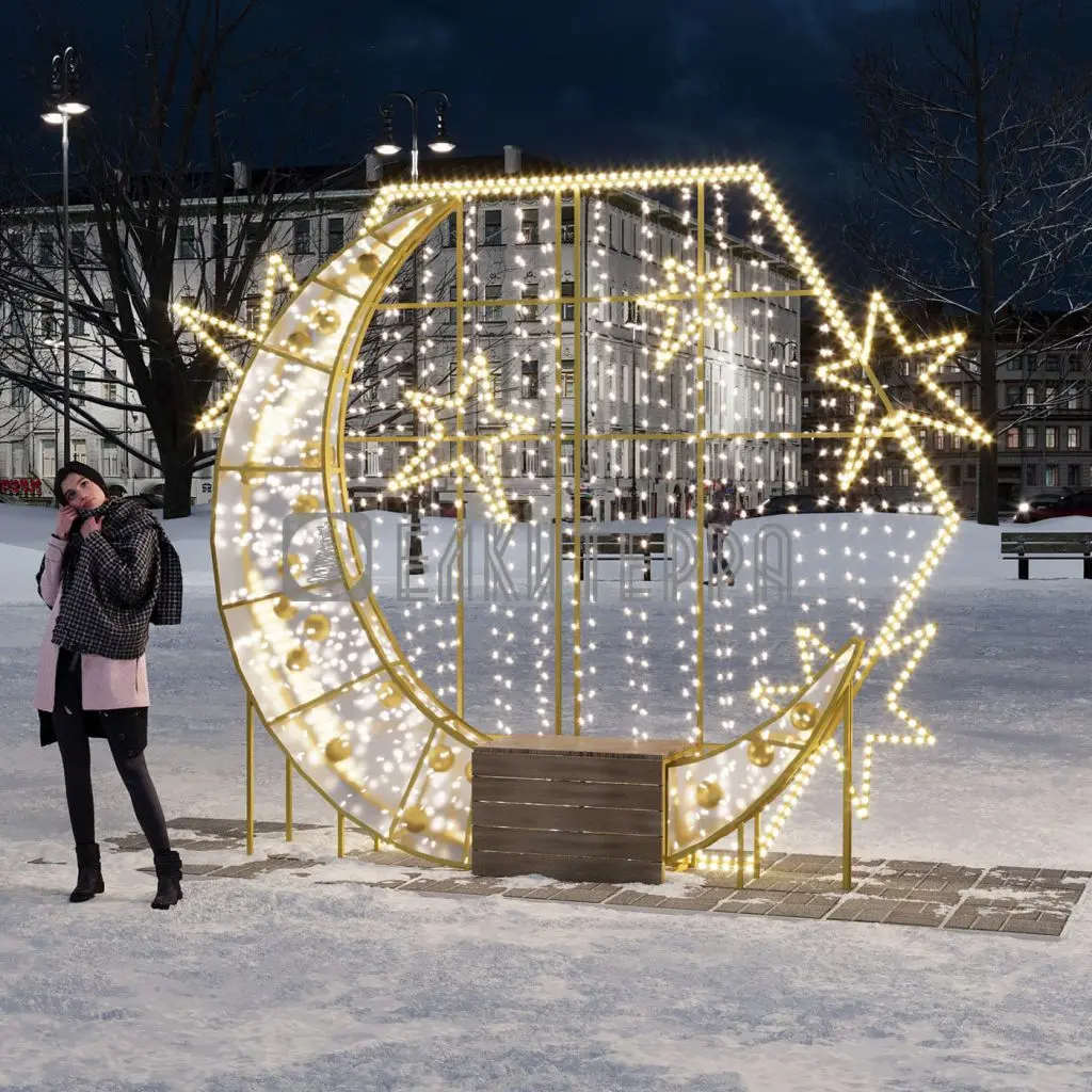 Световая фотозона новогодняя со скамьёй Полумесяц