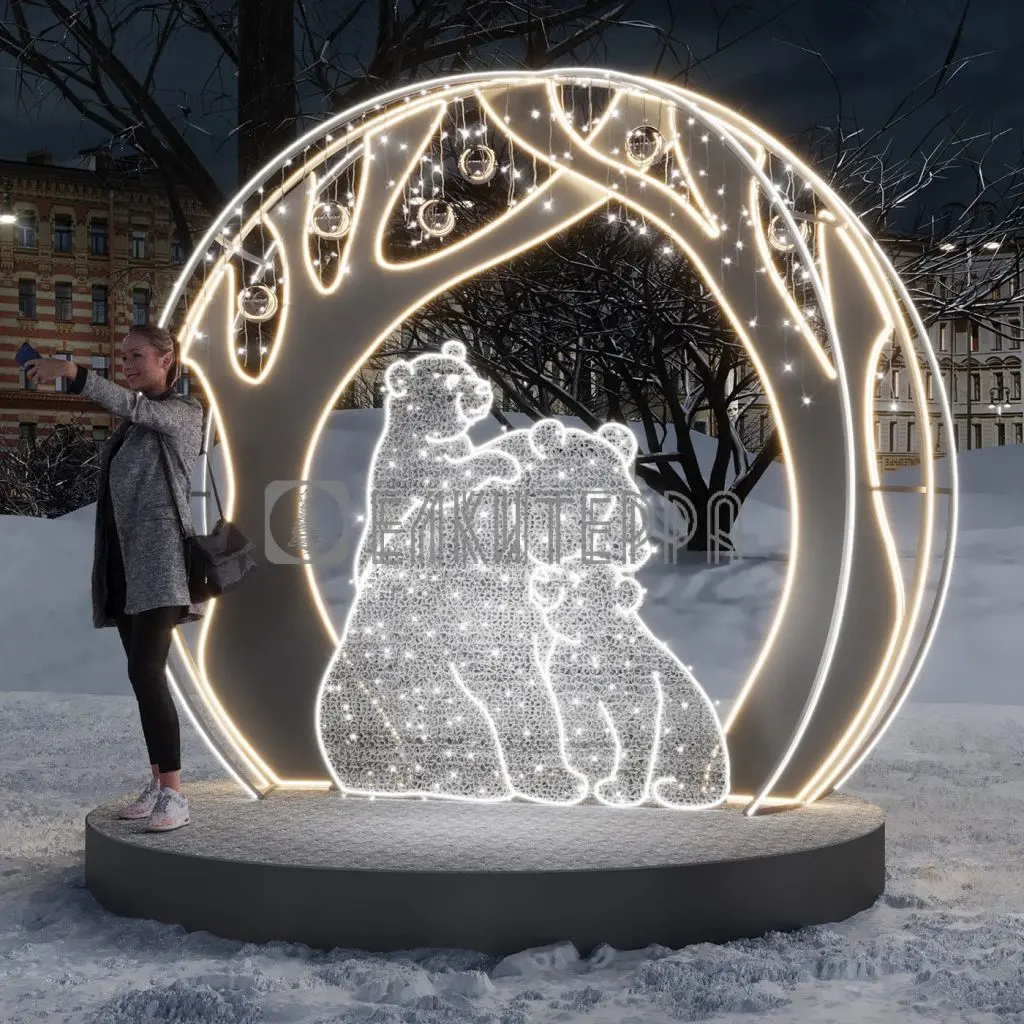 Световая новогодняя фотозона «Семья мишек»