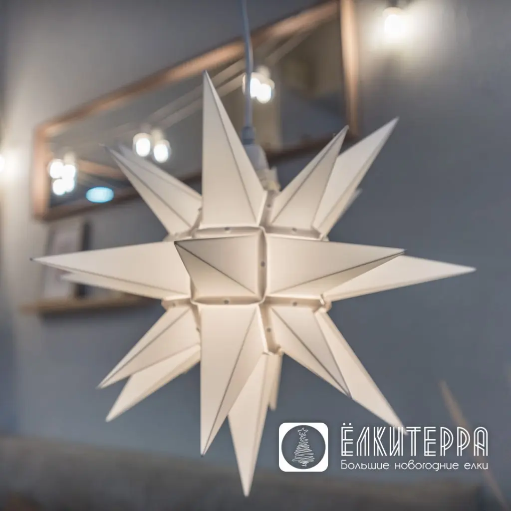 Звезду модели А4 (40 см) Вы можете использовать в качестве декоративного светильника и украшения одновременно, расположив на тумбочке, полке или камине или подвесить над обеденным столом или семейной зоной отдыха.