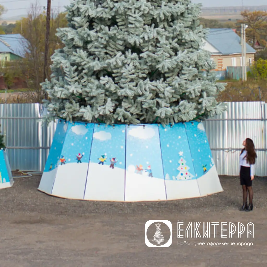 Прямоугольное декоративное ограждение для ствольной искусственной елки высотой 4 м, синяя тема