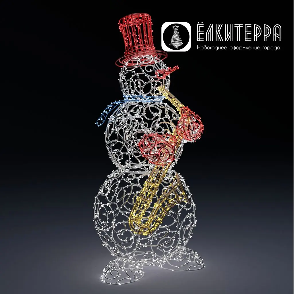 Снеговик-музыкант Саксофон световая новогодняя фигура
