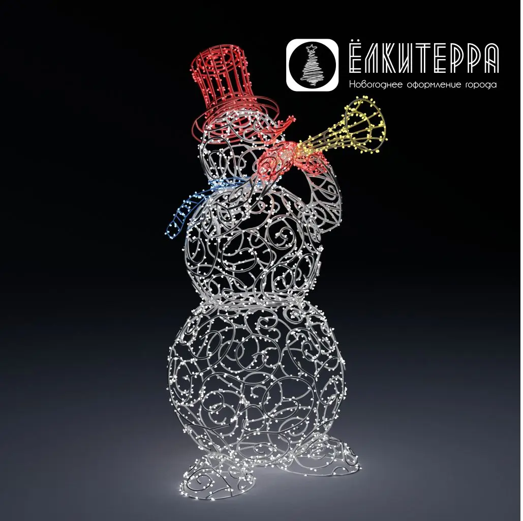 Снеговик-музыкант Флейта световая новогодняя фигура