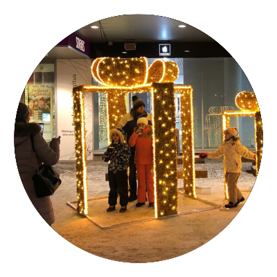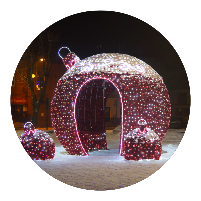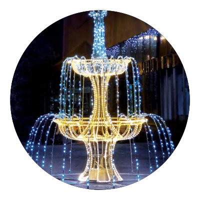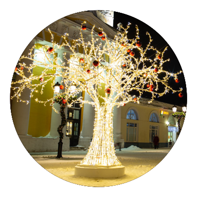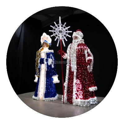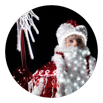 Каркас, фиберглас, ПСБ с ударопрочным покрытием, мишурный ковер, светодиодные гирлянды, светодиодный дюралайт