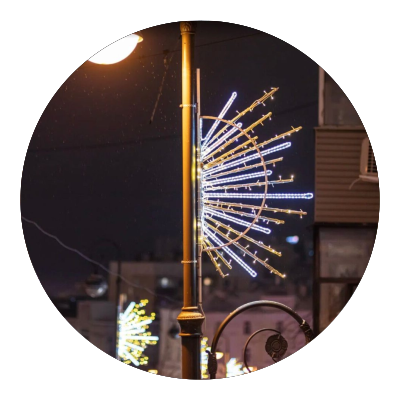 Каркас: алюминий, пластиковые шары;Светотехника: дюралайт, светодиодная нить,бетонные пригрузы