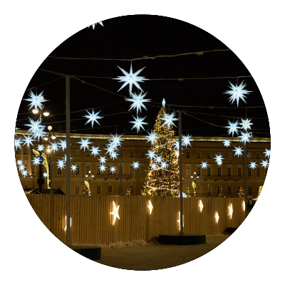 Каркас: алюминий, покраска Обшивка: мишурный ковёр, ПЭТ, плёнка, пластиковые шары, квинтет, доска декоративная Светотехника: дюралайт, светодиодная нить Подиум: стальной каркас с покраской (3x2 - 3шт. и 2x2 - 3шт.) Пригрузы: тротуарная плитка 400*400*40мм (30 шт.)