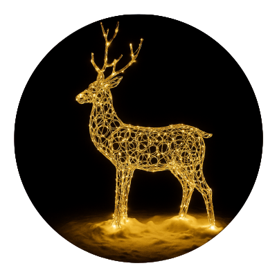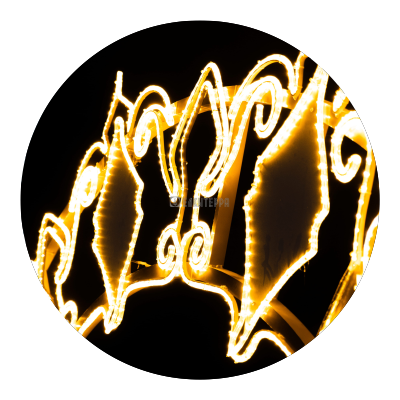 Каркас: алюминий, покраска Обшивка: мишурный ковёр, ПЭТ Светотехника: дюралайт, светодиодная нить