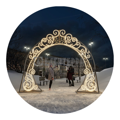 Каркас: алюминий, покраска Светотехника: светодиодная нить Подиум: стальной каркас с покраской (3x3 - 4шт.) Пригрузы: тротуарная плитка 400*400*40мм (36 шт.)