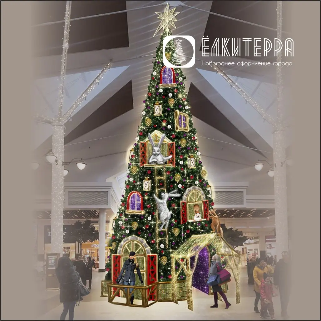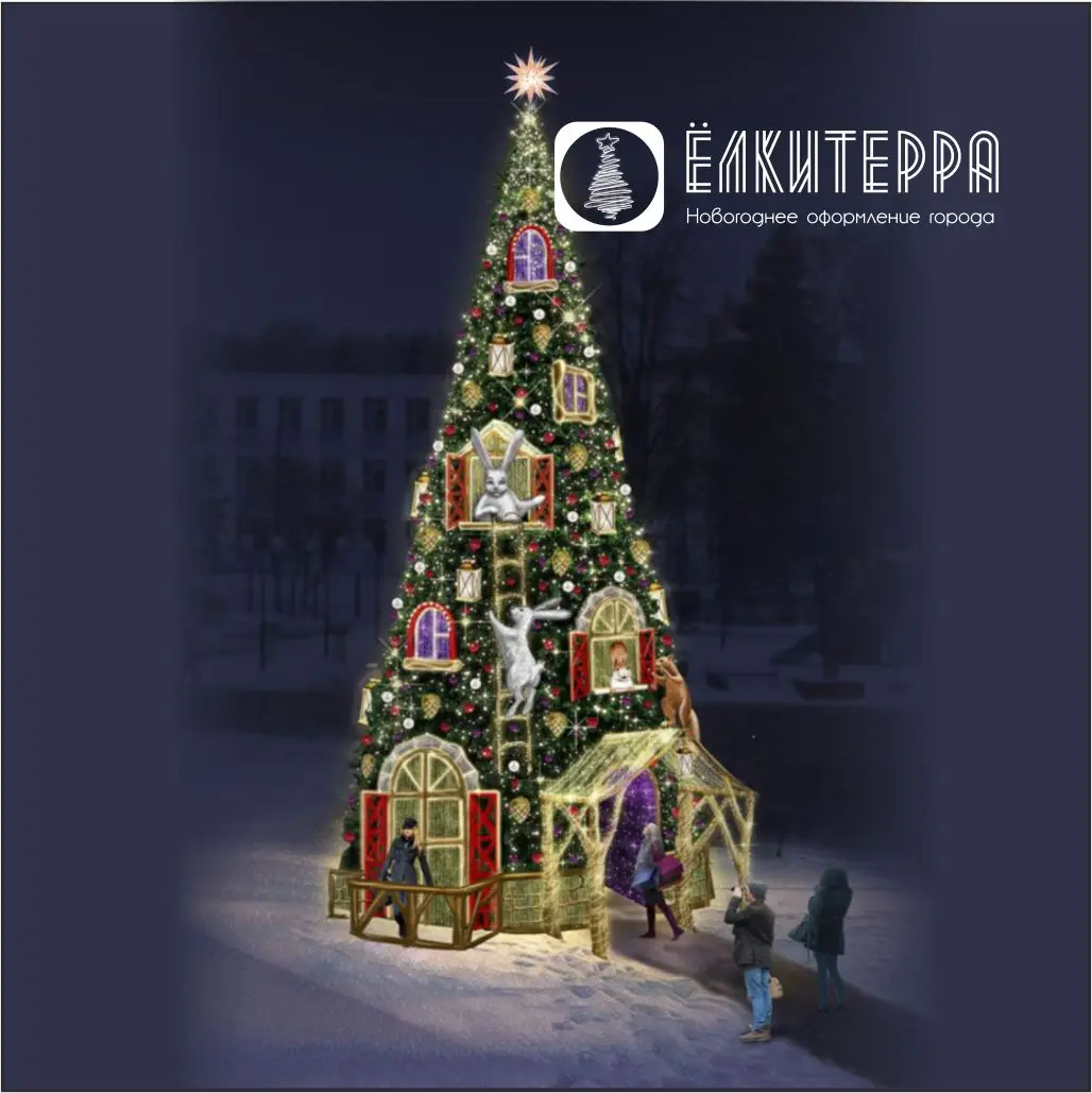 Искусственная уличная елка с комплектом оформления Новогодний Экспресс, высота 10 м