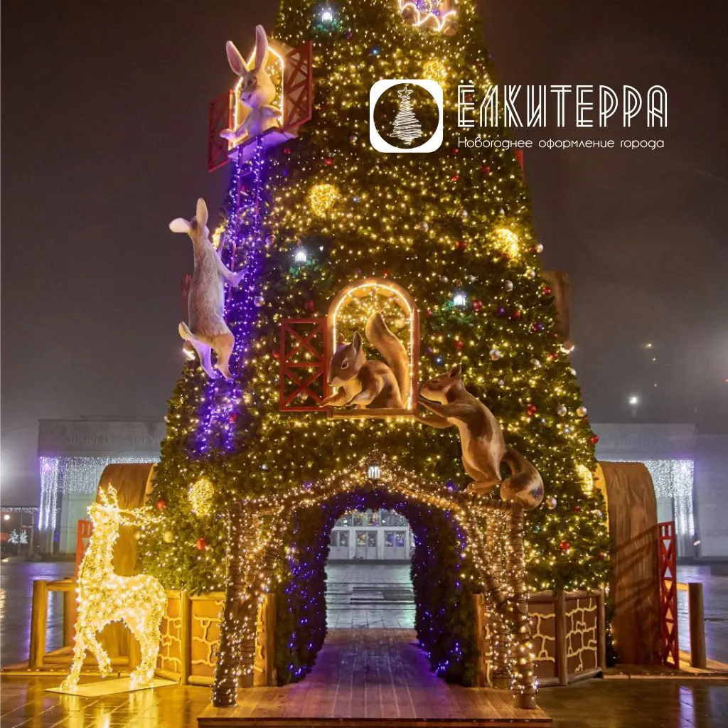 Искусственная уличная елка с комплектом оформления Новогодний Экспресс, высота 10 м