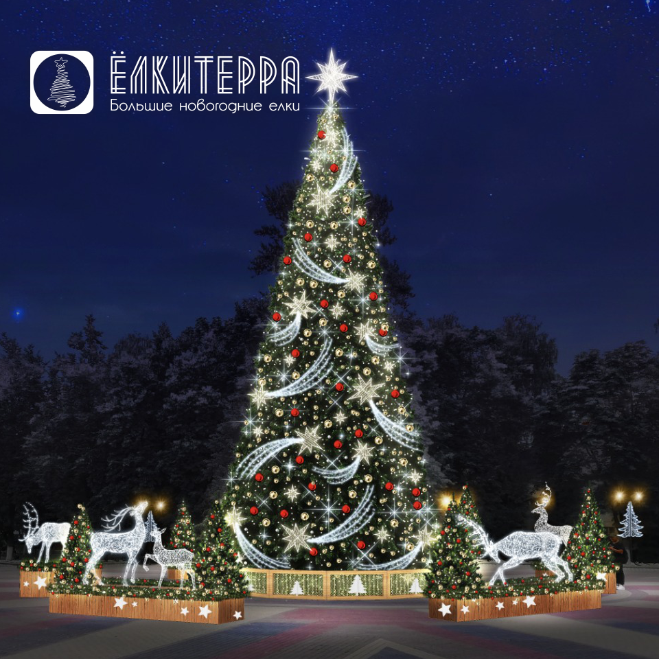 Искусственная уличная елка с комплектом оформления Новогодний Экспресс, высота 10 м