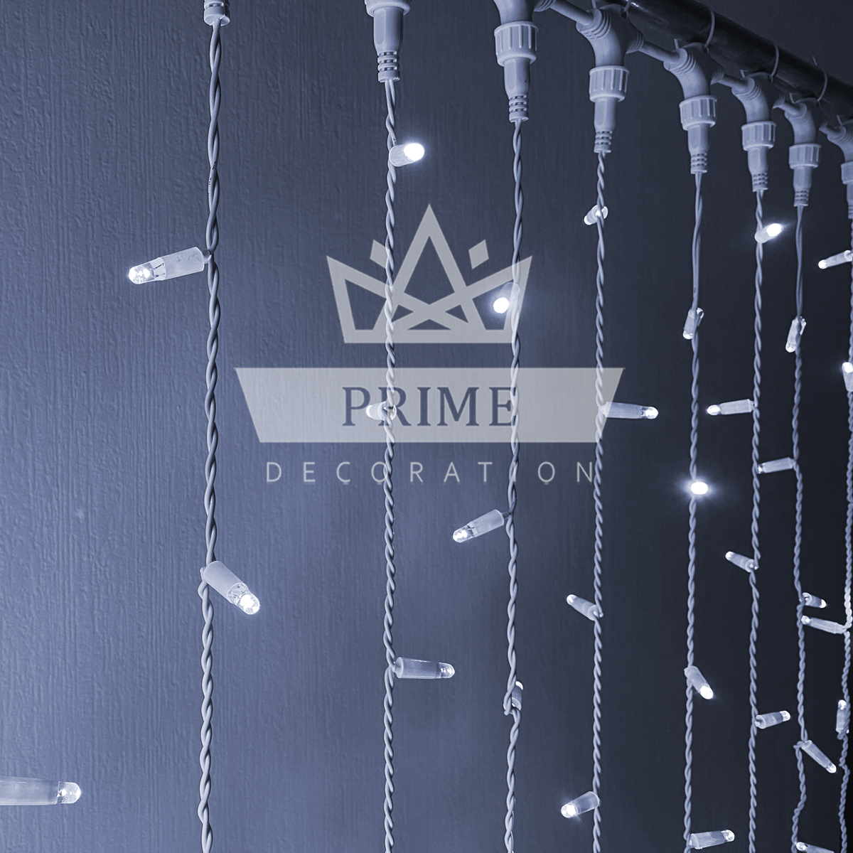Светодиодный занавес 2 х 9 м, ПВХ, статика, белый провод, холодный белый, 220В